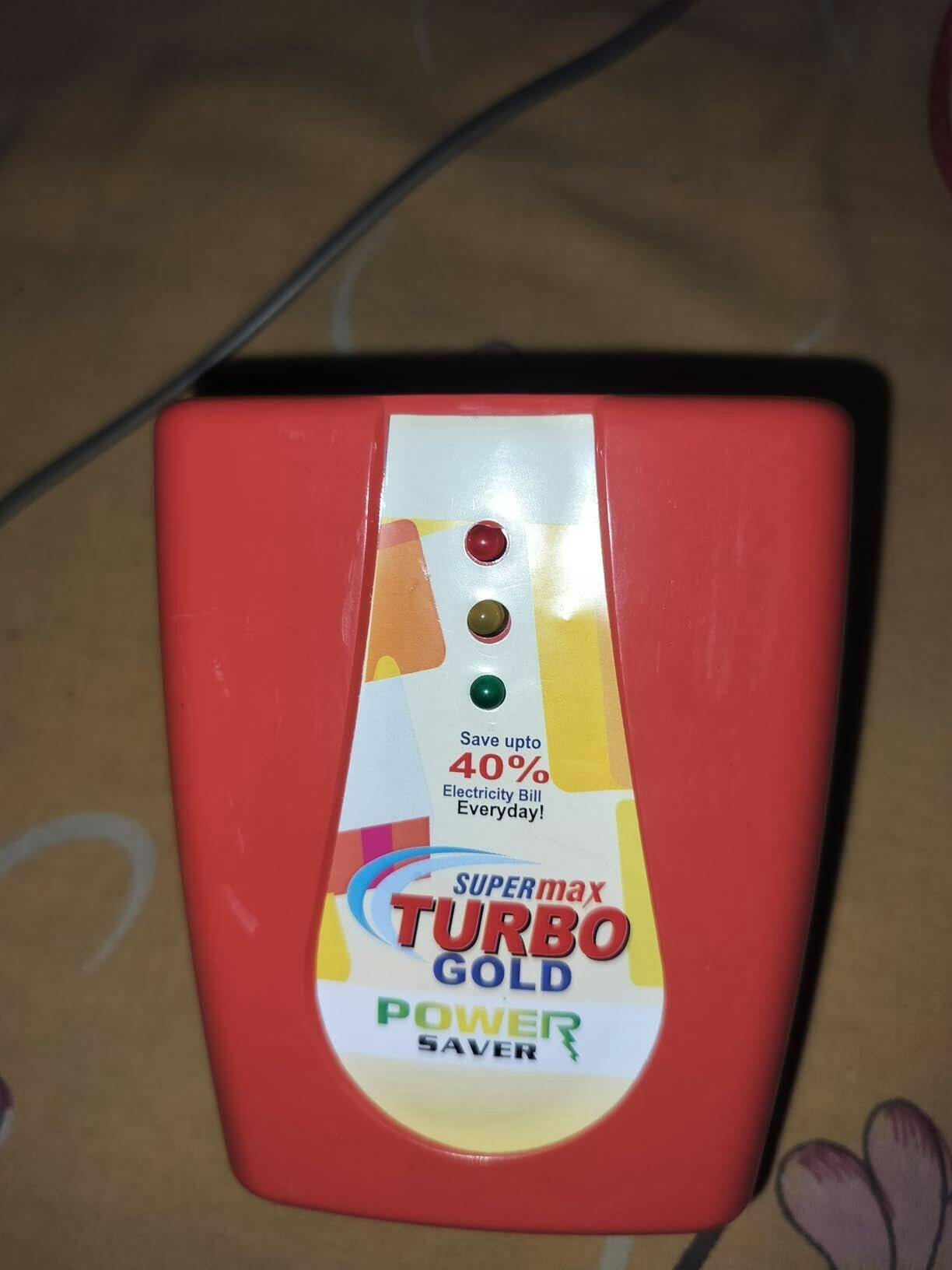 Slash your electricity bills and make your home energy-efficient with the Super Maxx Turbo Gold Power Saver. This compact, plug-and-play device helps optimize your household power consumption and protect your appliances from voltage fluctuations — all while cutting down your electricity expenses by up to 40%.